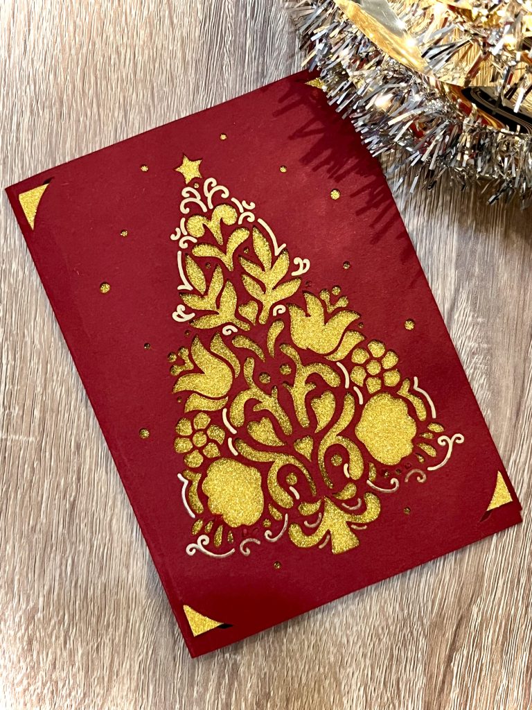Carte de vœux rouge & doré pailleté