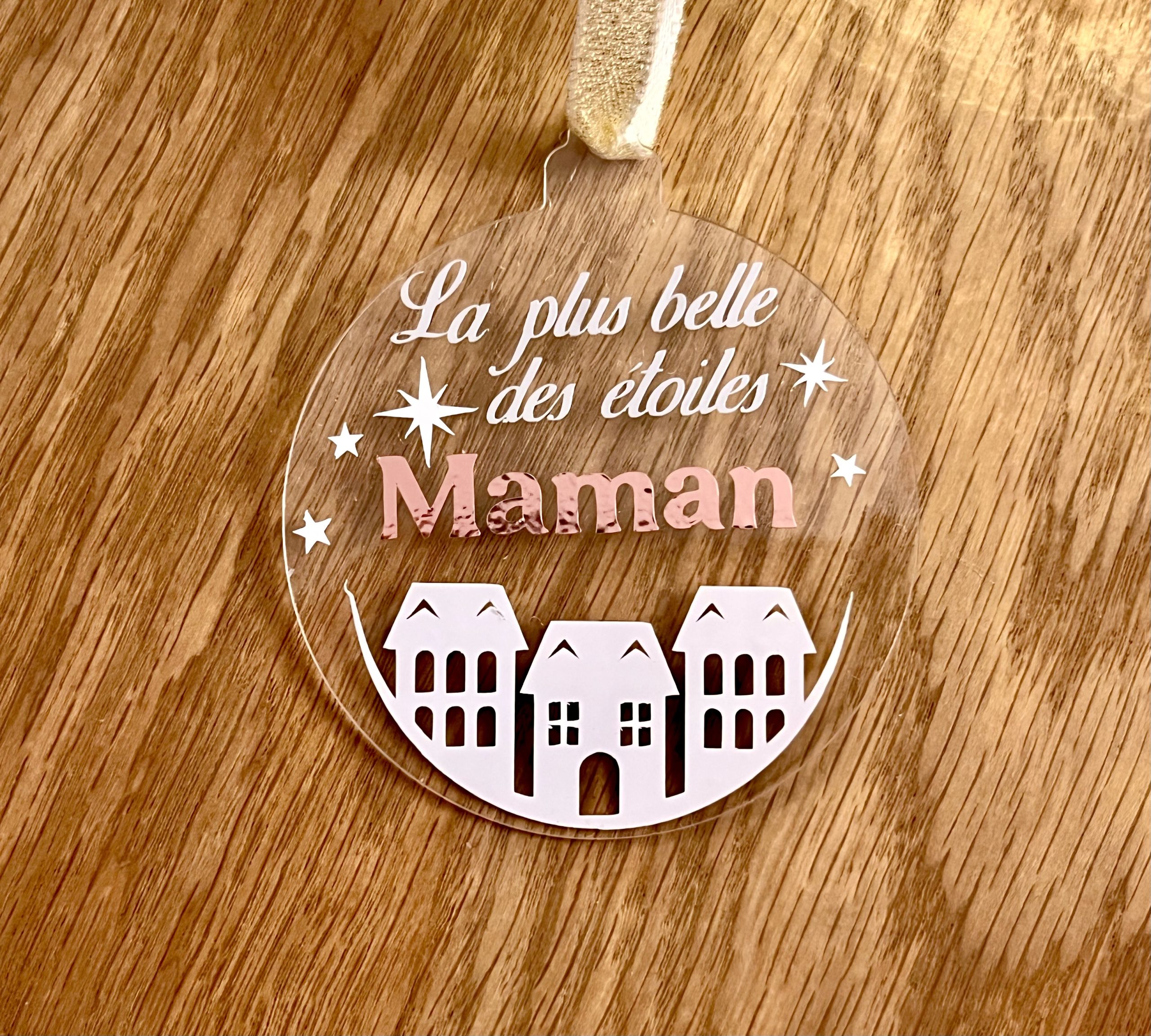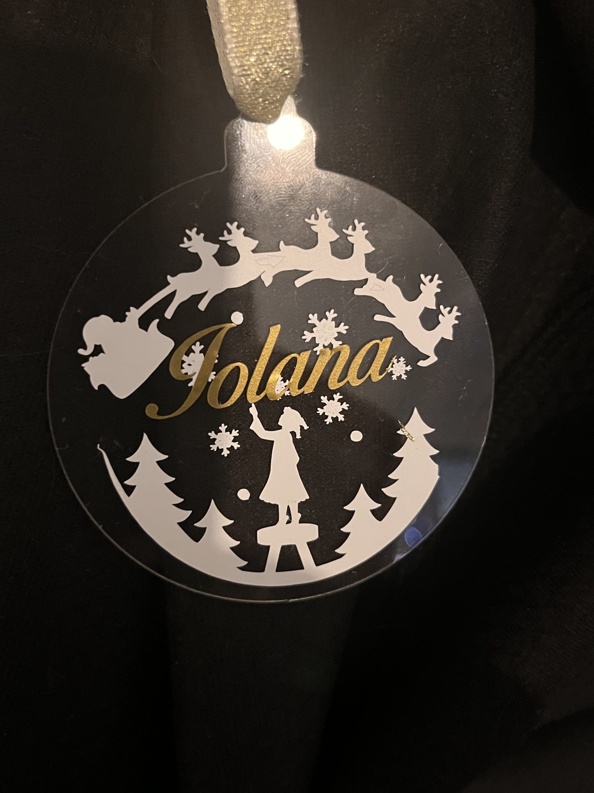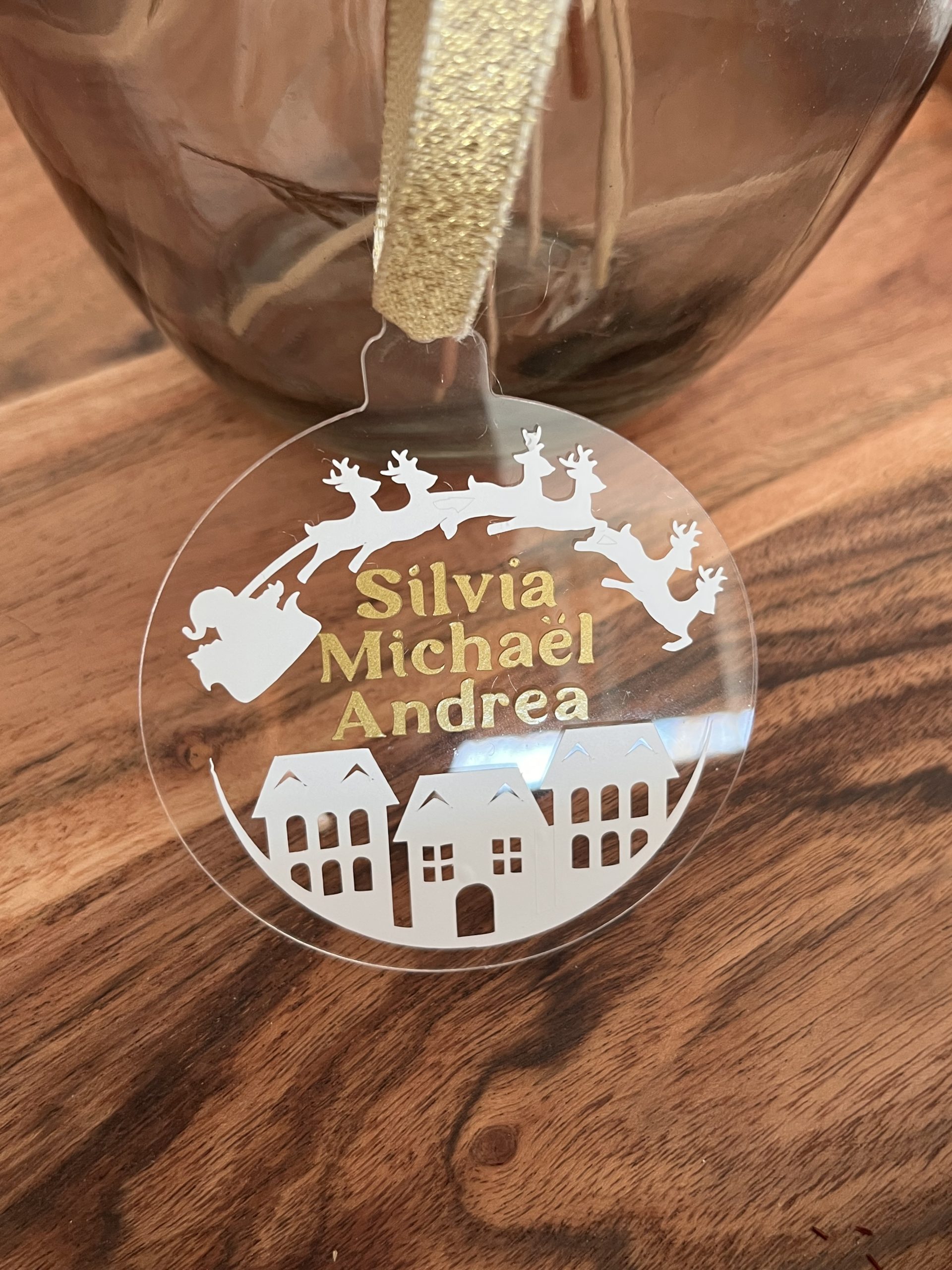 Boule de noël en plexi personnalisée au prénom de votre choix.