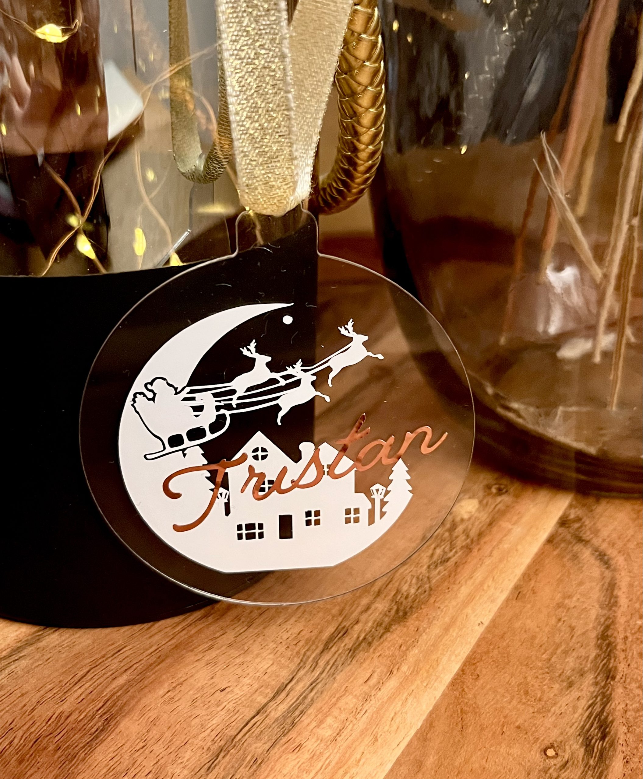 Carte de voeux artisanale à volet – Taupe & Sapin holographique